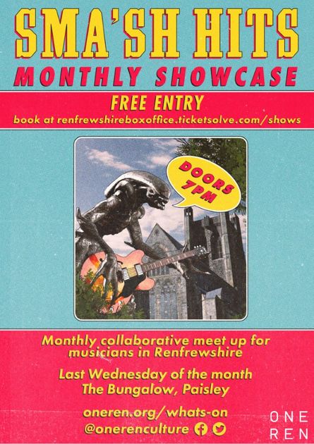 As part of One Ren’s Artist Meet-ups, Sma’sh Hits is a Renfrewshire music collective intended for musicians who are interested in meeting other artists to collaborate and nurture the local music scene!
